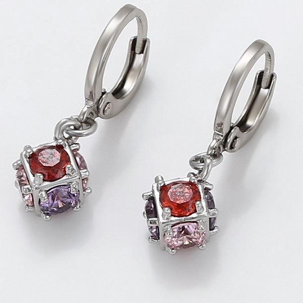 Deslumbra con estos impresionantes aretes chapados en oro 18k adornados con vibrantes circones negros o rojos y acentos de circones claros. Su diseño en forma de racimo irradia un encanto apasionado y lujoso, ideales para resaltar tu estilo en eventos elegantes.